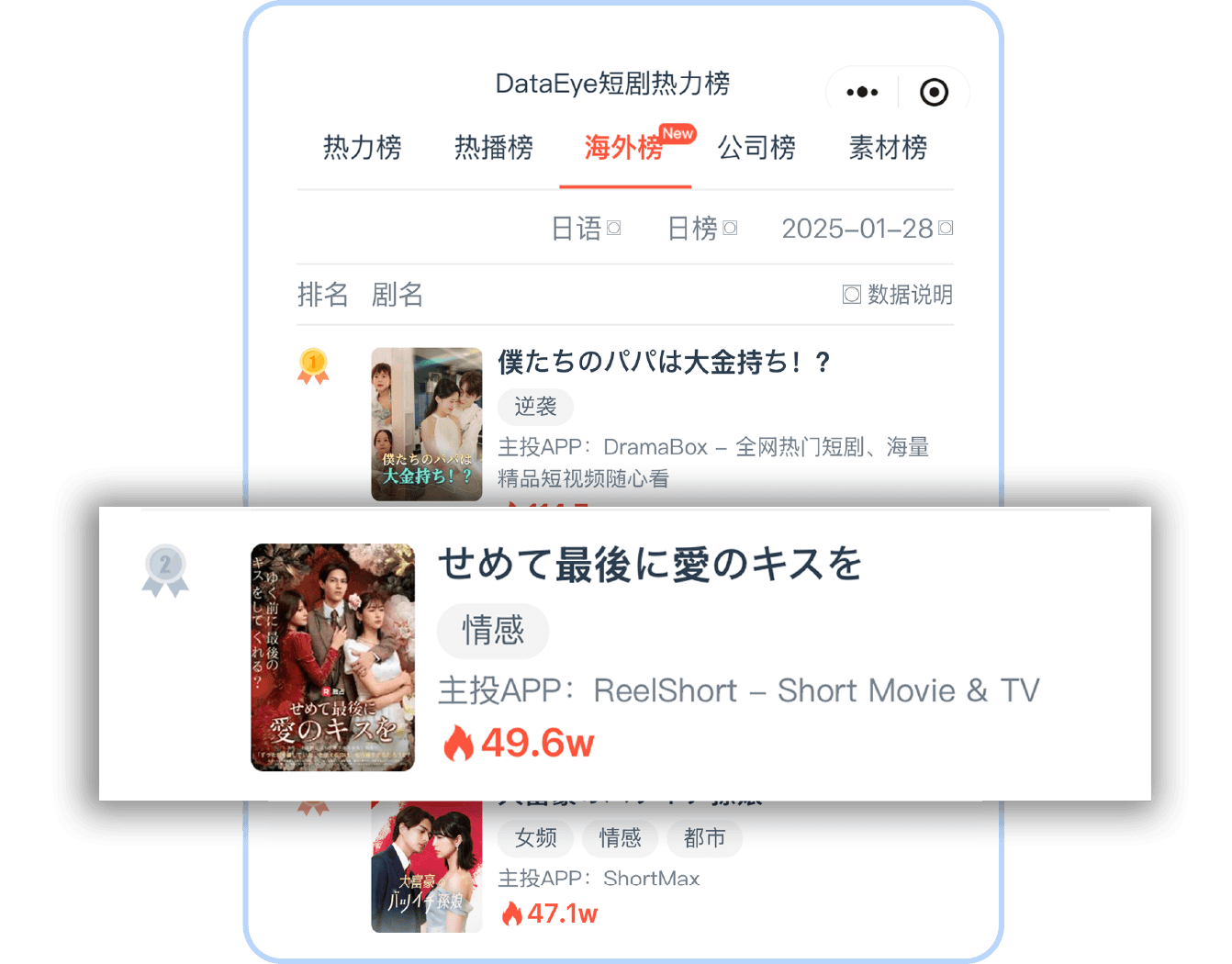 DataEye短編ドラマ熱力ランキング(日本区)第2位